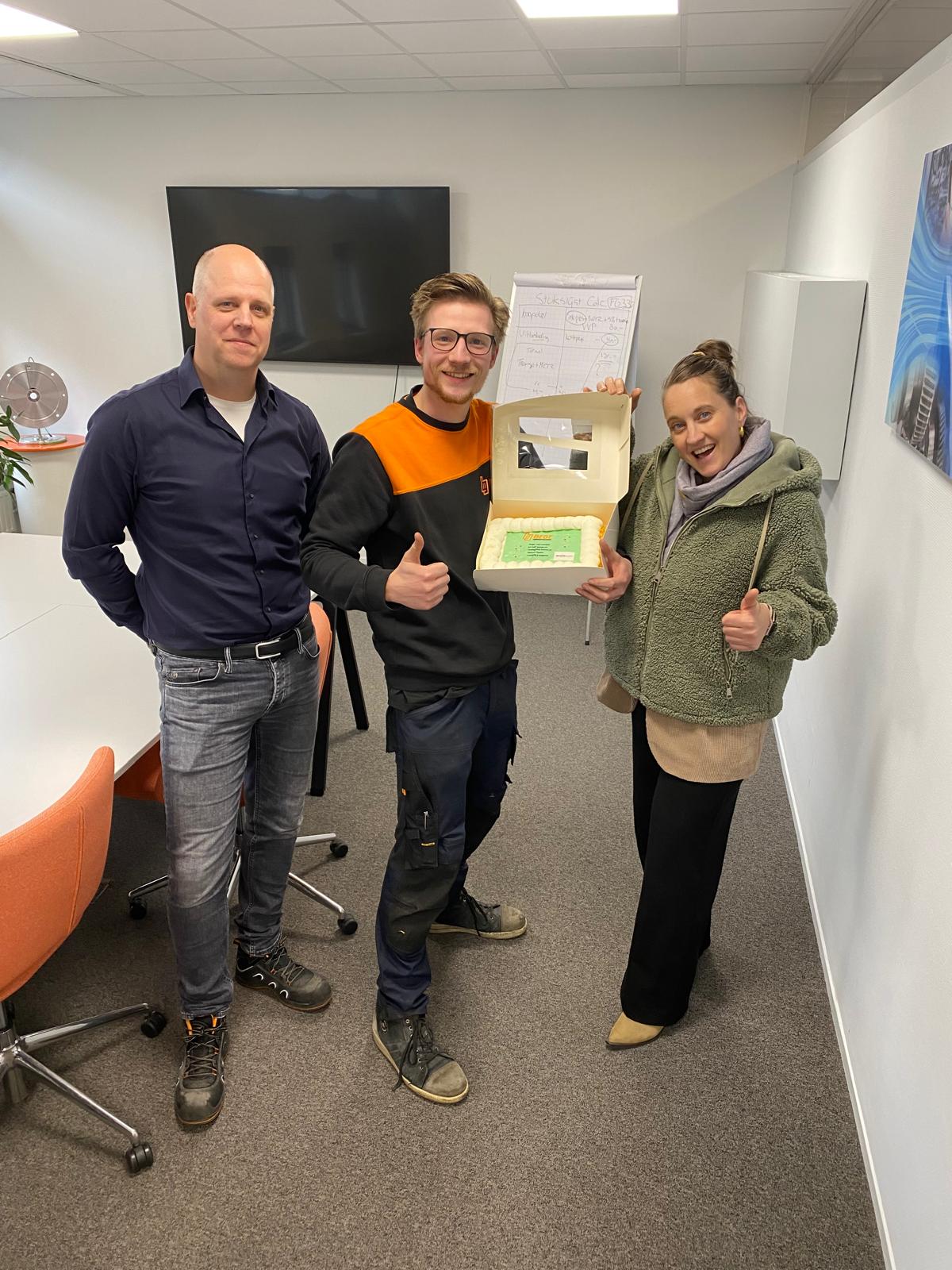 Onlangs mochten we opnieuw helpen bij een magazijnvacature. Dit keer met doorgroeimogelijkheid naar een leidinggevende rol. We vonden Dennis, mét ervaring in een technisch magazijn en ambitie om door te groeien. Sinds augustus is hij gestart en het gaat hartstikke goed. Laatst gingen wij langs met een taart, om hem persoonlijk nogmaals succes te wensen.